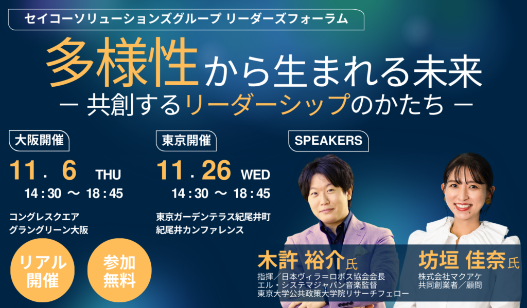 このたび、セイコーソリューションズグループ主催のイベント【セイコーソリューションズグループ リーダーズフォーラム】「多様性から生まれる未来 - 共創するリーダーシップのかたち -」を開催いたします。